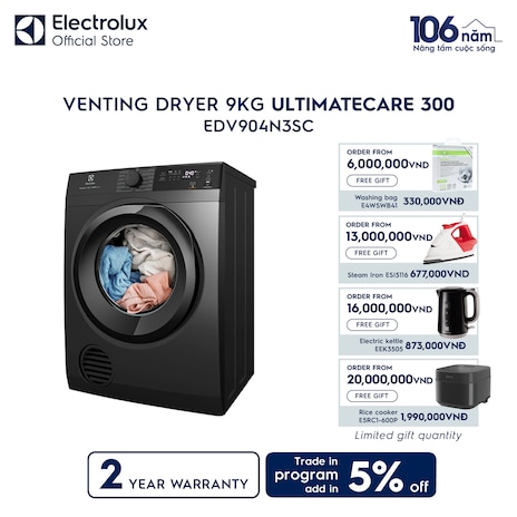 9kg UltimateCare 300 venting dryer EDV904N3SC