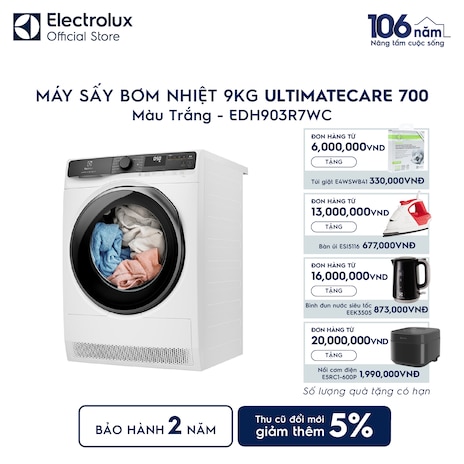 Máy sấy quần áo Electrolux bơm nhiệt 9kg UltimateCare 700 EDH903R7WC